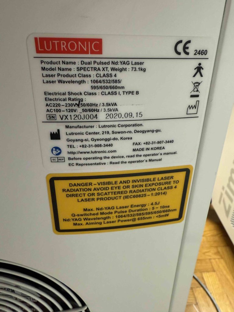 Πωλείται μεταχειρισμένο laser Lutronic Spectra XT, αγορασμένο το 2021 και σε άριστη λειτουργική κατάσταση. Περιλαμβάνει όλα τα handpieces (1064/532 , 585, 595, 650, 660).